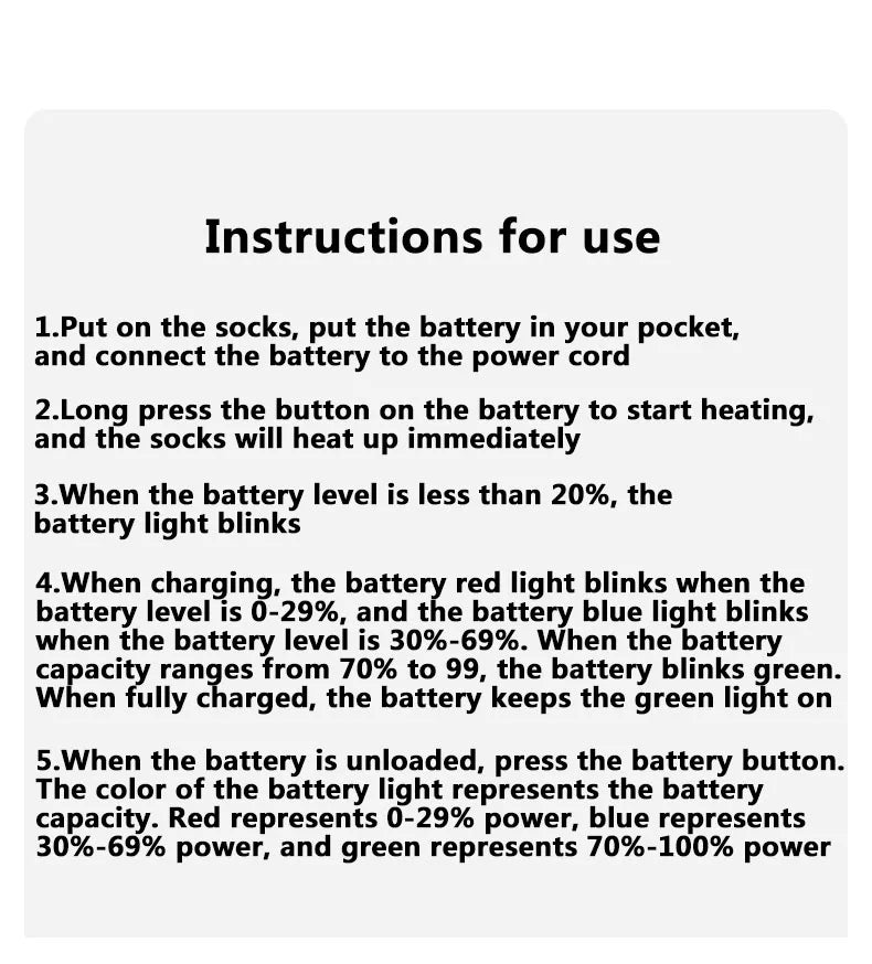 Winter Heated Socks provide up to 8 hours of warmth, perfect for winter activities. With thermal insulation and breathable fabric, feet will stay comfortable and dry even in the coldest temperatures. Enjoy heated comfort anywhere outdoors. The advanced insulation and fabric design provide the perfect balance of warmth and breathability, ensuring maximum comfort even in the harshest of winter conditions. For up to 8 hours of warmth, stay energized and comfortable outdoors with Winter Heated Socks.